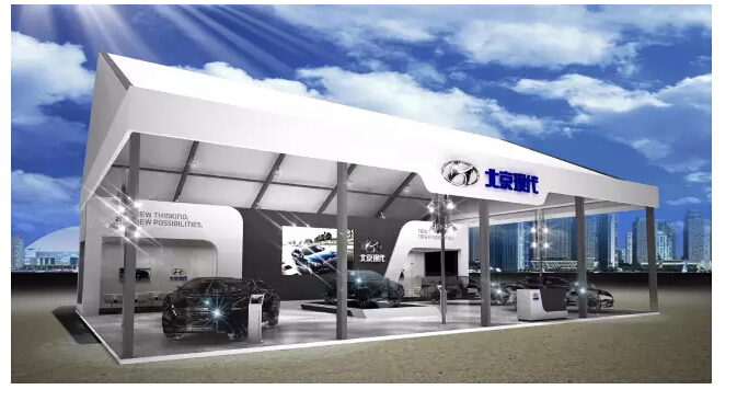 進入大門,走到最里面,就能發現一處高大上的展具,這就是我們北京現代展區啦!