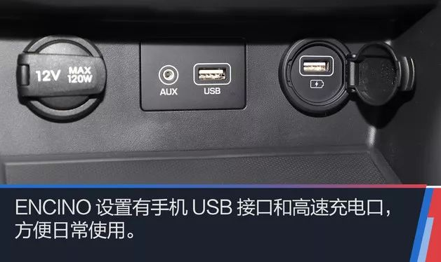 和海外版車型不同的是,ENCINO高配車型采用皮革包裹而非皮革+織布的材質(zhì),座椅靠背包裹性做得比同級(jí)別小型SUV要好一些。例如,紅色縫線,紅色安全帶,仿碳纖維紋路的座椅皮革裝飾等都在給車內(nèi)營(yíng)造運(yùn)動(dòng)的氛圍。
