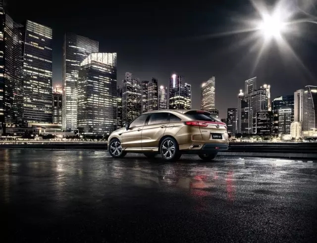 UR-V以本田CONCEPT D概念車為基礎,4825/1942/1675mm(兩驅版本高為1670mm)的大個頭頗具侵略性,前臉的黑色中網與鍍鉻裝飾條相得益彰,刀鋒式全LED前大燈起到了畫龍點睛的作用,讓人很容易被它的氣質吸引;而懸浮車頂與掀背式流線尾翼勾勒出整體車身的流暢線條,LED組合尾燈配合貫穿式裝飾條則具有很強的辨識度,再加上全系標配的245/55 R19規(guī)格輪胎+雙五輻風火輪造型的輪轂,成功在時尚大氣的基礎上增添了動感的元素。