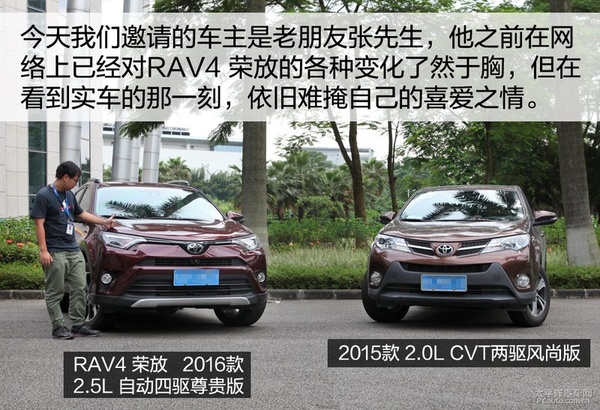 今天邀請的老車主是張先生,他此前的其他愛車也參與了我們的選題當中。當得知我們邀請他參與豐田RAV4榮放的新車體驗項目時,他欣然答應了下來。在此之前,張先生已經通過網絡對新款的變化有了比較深入的了解,所以談起對新款的變化,真的就是小兒科了。