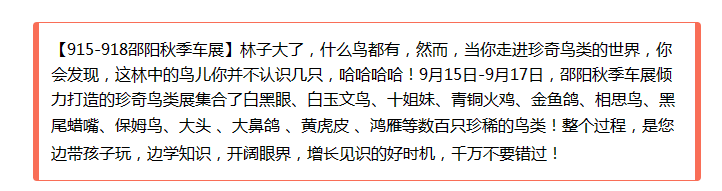 那就去邵陽秋季車展看鳥吧!