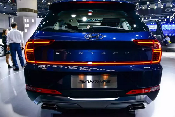 車尾最大的亮點當然是全系的尾燈設計,除了貫穿車尾,兩側還向里回勾,配合SANTAFE的字母標識,和霧燈、排氣,整個車尾的層次感油然而生。尺寸方面,新車的長寬高分別為4930/1910/1720mm,軸距為2865mm,也是這個級別的標準水平。