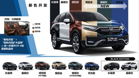 配色方面,新款本田CR-V除了新增了雅韻金、銀黛灰(混動(dòng)車型專屬)、月光藍(lán)三種外觀配色之外,還有個(gè)性十足的Black Edition車型(包括彩晶黑、晶耀白兩種配色)可供選擇,該車型有專屬標(biāo)識。