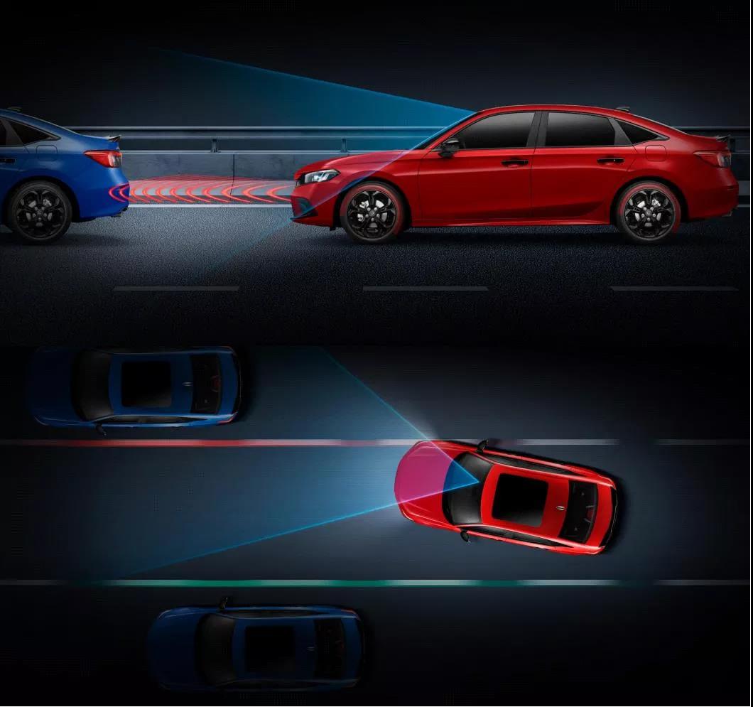 Honda SENSING安全超感系統一直是行業內智能安全技術發展較超前的,第十一代思域所搭載的最新版本在原有基礎上新增了TJA交通擁堵輔助功能。Honda SENSING安全超感系統不止關心車內乘員,也關心道路上的其他成員,它首次采用的ADB自適應遠光燈能在對向來車時自動調節燈光,避免對向駕駛員出現晃眼或是看不清楚路況的危險。
