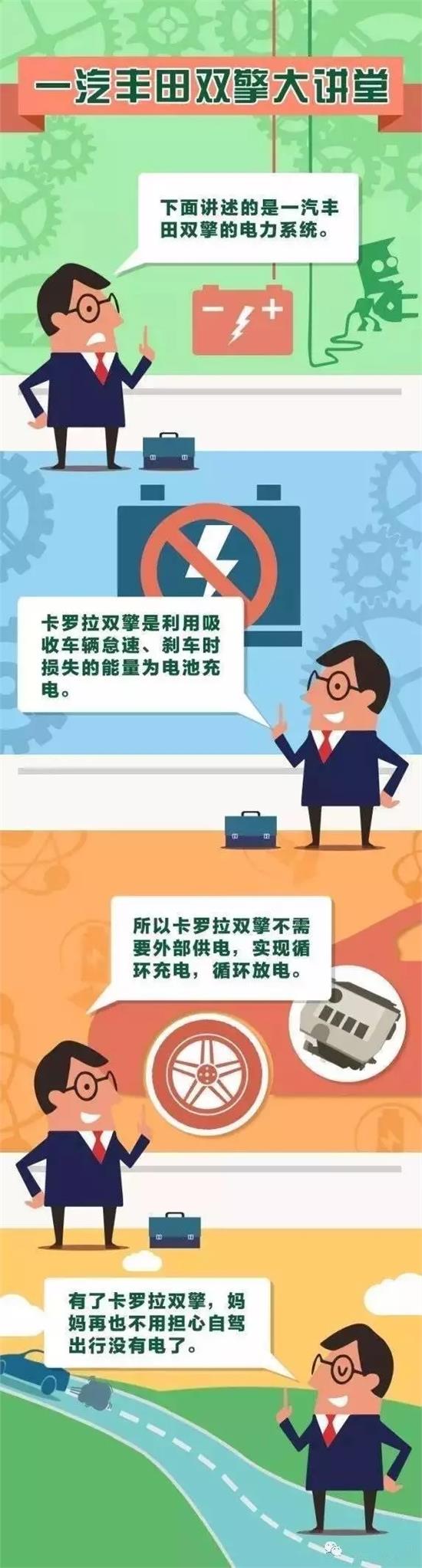 一汽豐田油電混合雙擎動力車,以“TOYOTA油電混合雙擎動力”為開發理念,主要特點是:可根據啟動、行駛、加速、停車等不同狀況,組合發動機和電動機的長處。