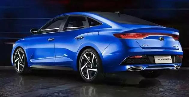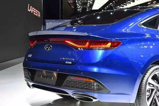 LA FESTA菲斯塔應用了現代汽車全球最新Sensuous Sportiness設計理念 ,并融入了很多中國元素設計。LA FESTA菲斯塔前臉采用龍鱗狀進氣格柵,搭配兩側極具辨識度的一體式LED大燈,整體造型十分顯眼,且大燈眼角處帶有日間行車燈。新車前保險杠兩側霧燈處采用類似空氣動力學設計,同時兩側嵌入細長的燈帶,立體感極強。