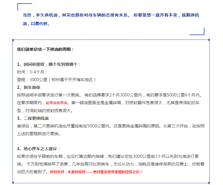 所以,從一般的公認概念上說,換機油的時間首先看里程。