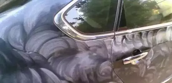 很多老司機,甚至汽車店的小工都喜歡畫著圓圈打蠟,其實這種做法是非常錯誤的。下圖可以看出,圓圈打蠟有很多地方蠟是不均勻的,上蠟效果差,還會令車漆表面產生同心圓狀光環效果,對車漆不好。正確的做法:直線方式和橫豎線方式交替進行,以雨水流動的方向打最后一道。